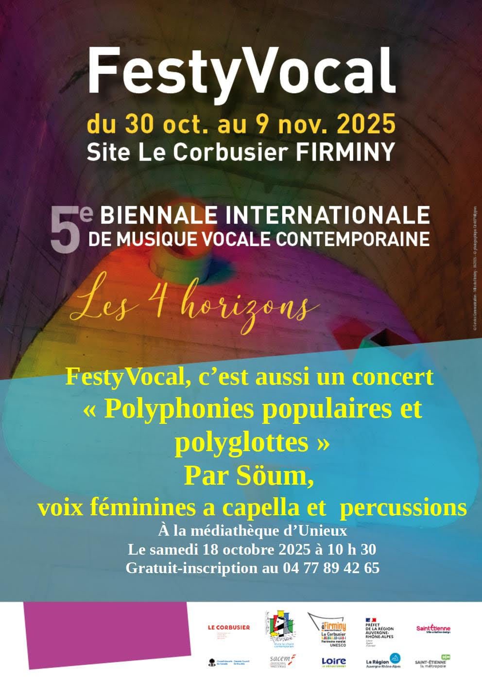 voix féminines a cappella et percussions à la Médiathèque d’Unieux.